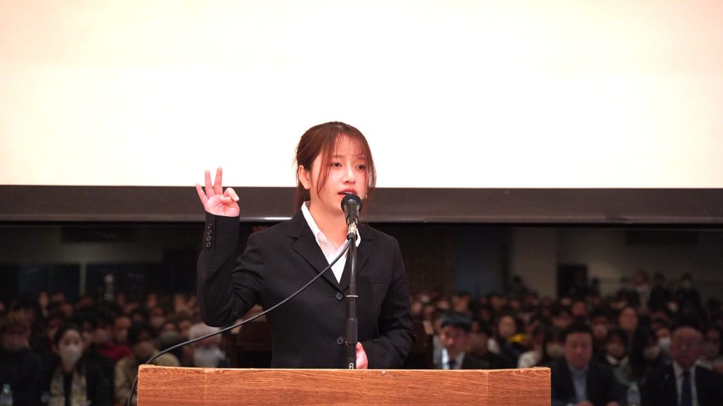 A total of 21 students, 12 in the morning session and 9 in the afternoon session, took the stage to deliver speeches on the theme "What is Happiness? ~The theme of the speeches was "What is Happiness?
